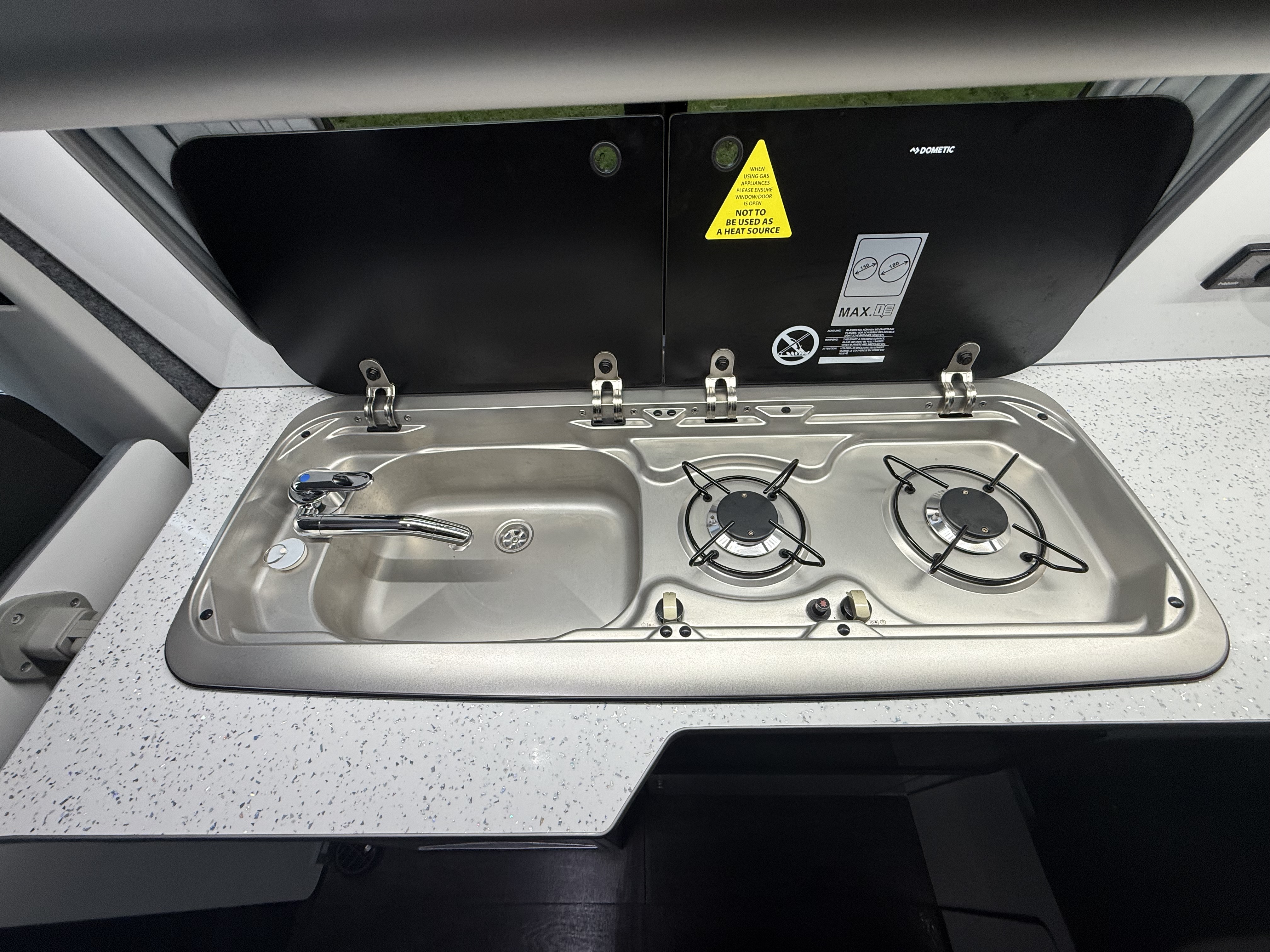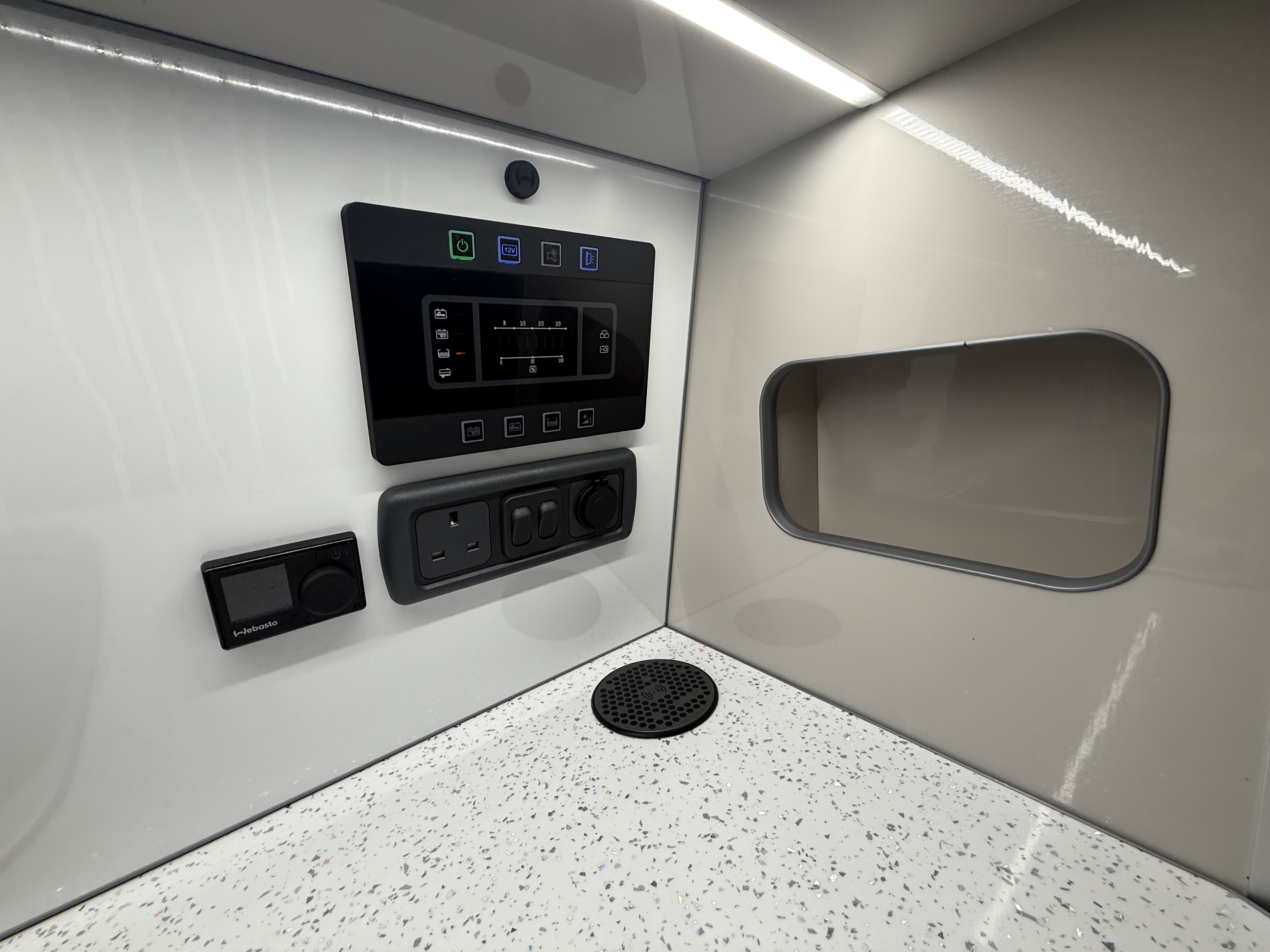 LED lighting, blinds/curtains, TV point (if fitted)