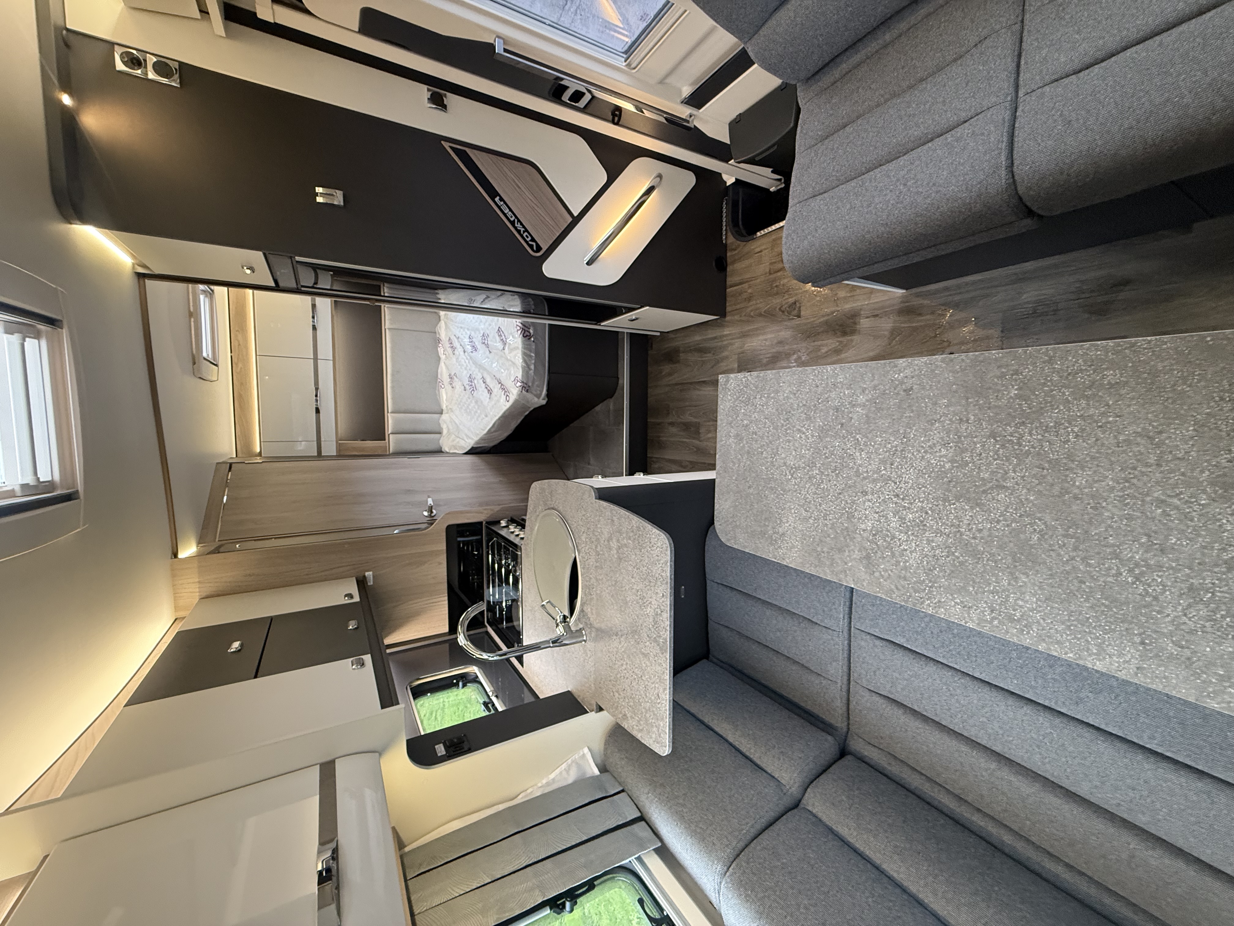 The 564 is perfect if you prefer a fixed rear bed for convenience and a more traditional layout. It’s the longest of the Voyager models and offers one of the best sleeping arrangements for couples who want quick bedtime setup without compromising lounge space.
